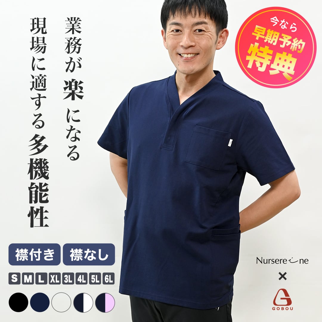 【ホワイト×ネイビー】襟付き、襟なし(2種類)とサイズ(8種類)を選択してください。