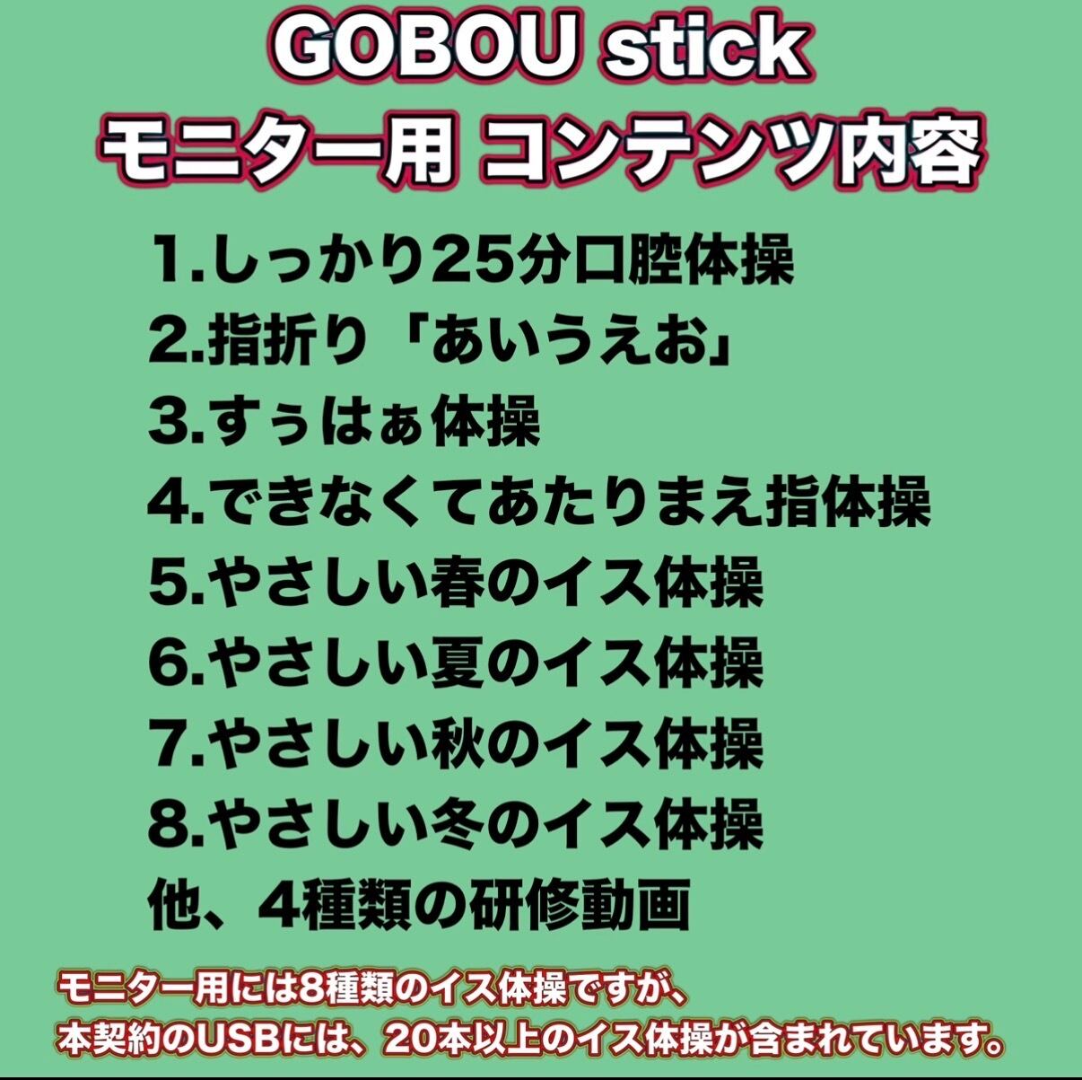 1、モニター用 GOBOU stickで、2ヶ月間お試し利用。